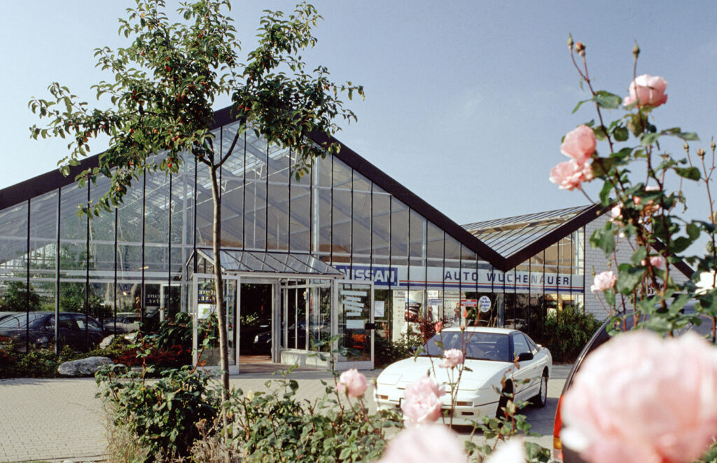 Dabei kamen die Beiden zusammen mit Schwager bzw. Bruder Paul Fritz zum Entschluss, eine einzigartige Verkaufsausstellung zu bauen.  Aus Liebe zur Natur und dem Faible für die Pflanzenwelt entstand ein ganz neues Konzept. Die ausgestellten Fahrzeuge teilten sich im Verhältnis 1:1 den Platz mit einheimischen und mediterranen Pflanzen. Die Ausstellungshalle war voll von Akazien, Zitronenbäumen und vielen weiteren Pflanzenarten. Neben der Pflanzenvielfalt und der genutzten Sonnenenergie war auch schon damals unser Ziel, eine bessere Lebensqualität für Mitarbeiter und Kunden zu schaffen.